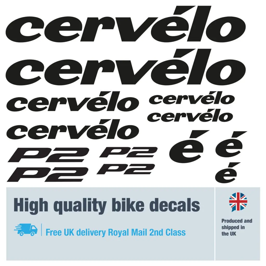 Cervelo P2 new bike decals labels with free bike protection (28 pack) – 20+ colours