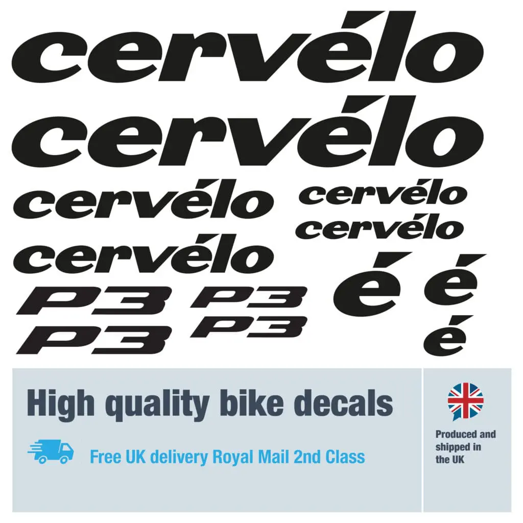 Cervelo P3 new bike decals labels with free bike protection (28 pack) – 20+ colours