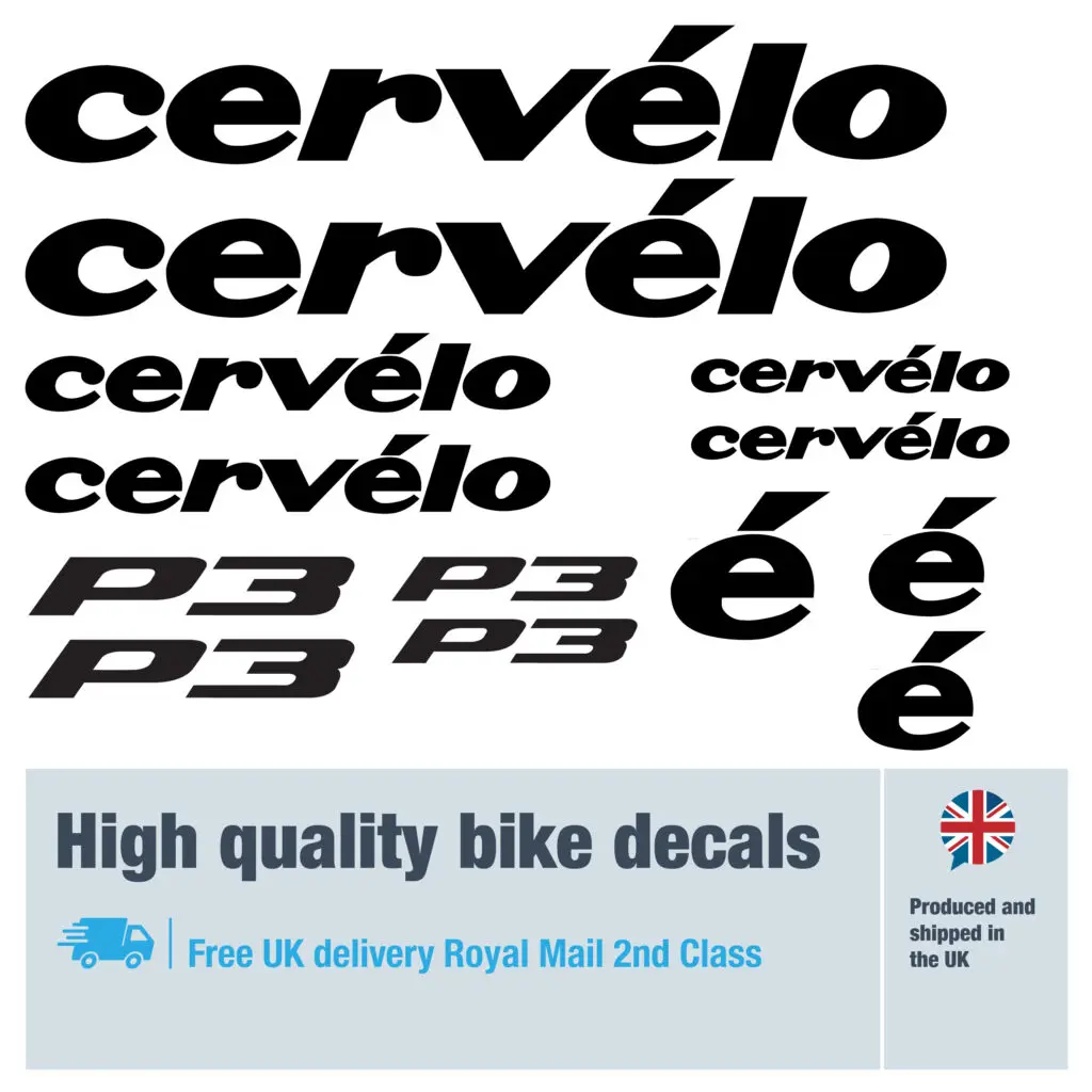 Cervelo P3 bike decals labels with free bike protection (28 pack) – 20+ colours